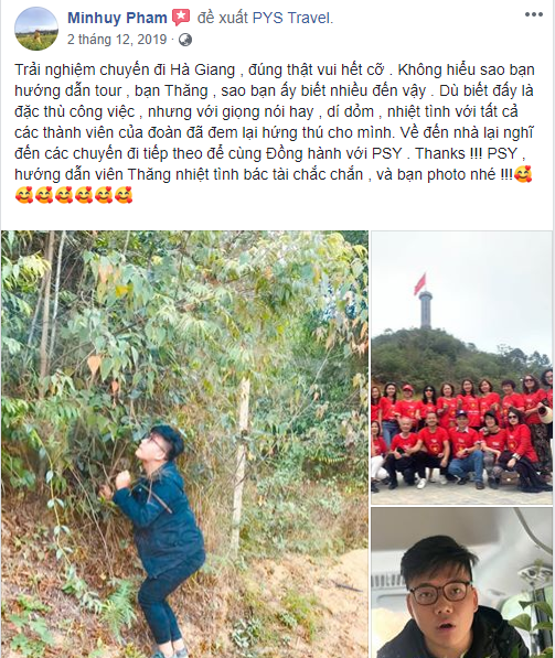 Cùng với đó chị rất cảm ơn PYS Travel đã cho chị trải nghiệm tuyệt vời về chuyến đi :"Về đến nhà lại nghĩ đến các chuyến đi tiếp theo để cùng Đồng hành với PSY . Thanks !!! PSY , hướng dẫn viên Thăng nhiệt tình bác tài chắc chắn , và bạn photo nhé !!!???????"