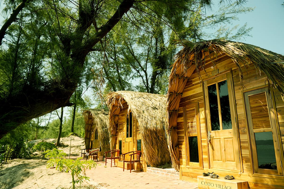 Coto Village nằm tại bãi biển Hồng Vàn với thiết kế hệ nhà lều gỗ hướng biển thơ mộng và được xem là một trong những khu nghỉ dưỡng "chất" nhất đảo Cô Tô. Những căn nhà gỗ mái lá có thiết kế độc đáo, sử dụng vật liệu thân thiện với môi trường được giới trẻ vô cùng ưa thích.