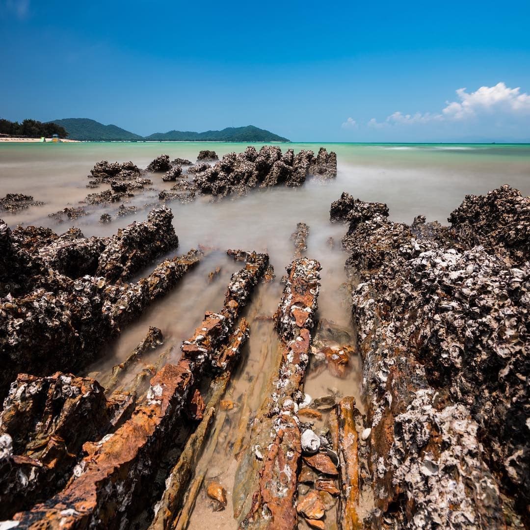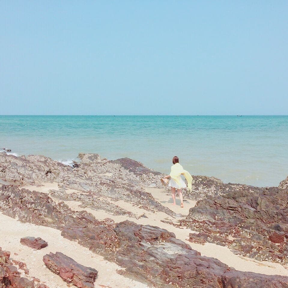 Bờ biển còn nguyên đó vẻ hoang sơ, những vỏ ốc trắng "dệt" trắng những miếng đá (ảnh: @namxinh.donghe)