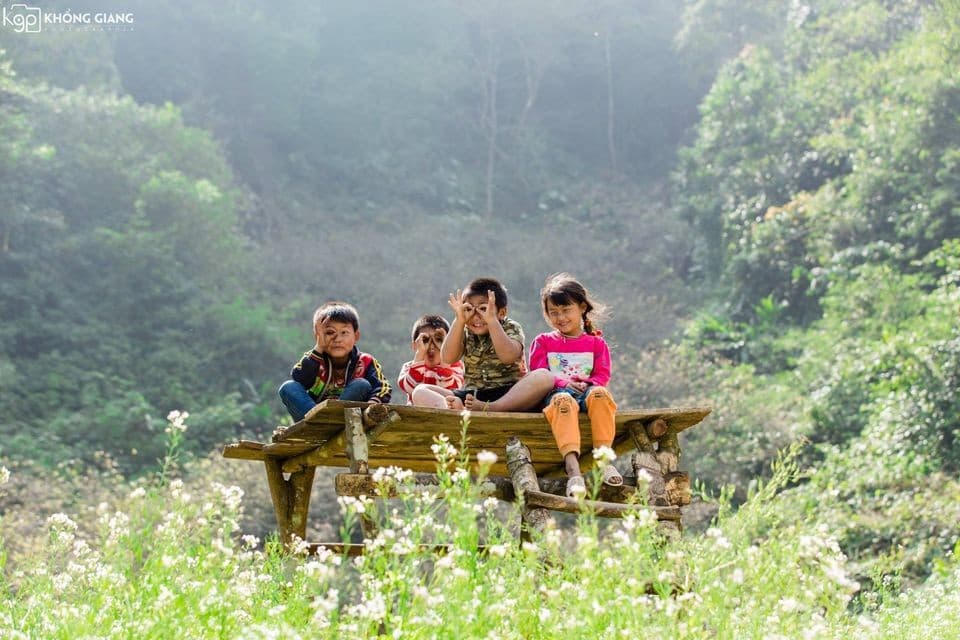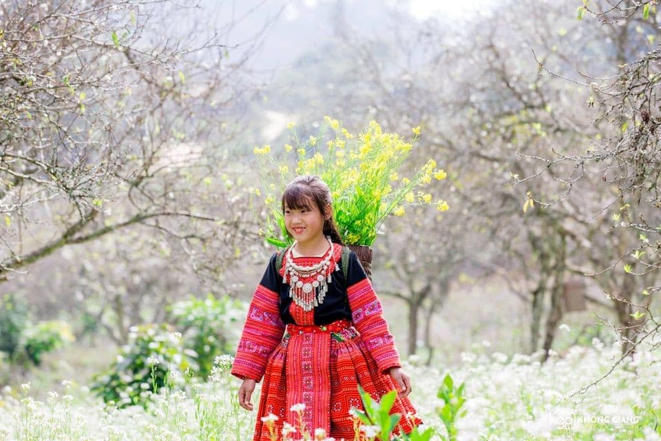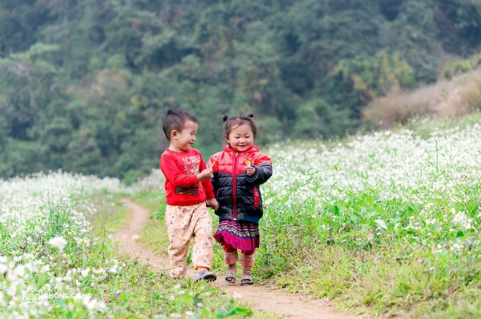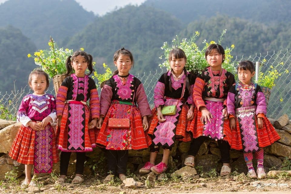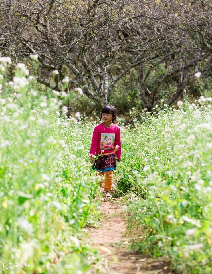 Bắt gặp những đứa trẻ hồn nhiên khoác trên mình những bông hoa rực rỡ. (Ảnh: Khổng Hoàng Giang)