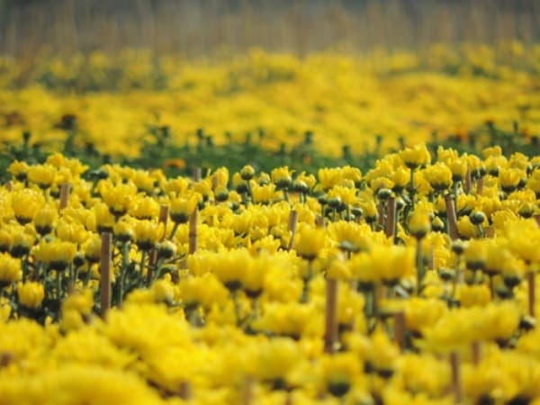 Trên vuông đất hai bên đường đều được phủ kín một màu xanh bạt ngàn, thẳng tấp của từng loại hoa khác nhau như: Vạn thọ, cúc mâm xôi, mồng gà, dừa cạn hay lạ như: dạ yên thảo, thu hải đường, cát tường…