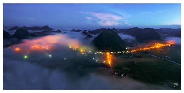 Hay cảnh mây vờn núi bồng bềnh tiên cảnh.