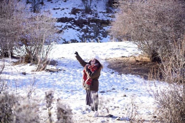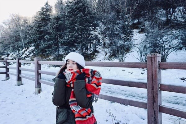 Đây là điểm lạnh nhất mà mình đến trong tour này. Lạnh đến mức không diện được áo xinh đẹp mà phải mặc áo phao đại hàn to ụ như chú gấu. Có những người trong đoàn mình đã ở lại không đi vào công viên do lạnh quá và mệt vì thay đổi độ cao chưa quen với thời tiết khắc nghiệt. May mắn được như ý nguyện lúc bọn mình đến cũng vừa hay là đợt tuyết thứ hai trong năm. Cả công viên trắng bao phủ bởi tuyết, trắng xóa cả một khung trời. Hồ hay sông cũng đều đóng băng hết luôn. Bốn mùa ở đây cảnh sắc sẽ không giống nhau. Mùa xuân là trăm hoa đua nở. Mùa hè là một màu xanh biếc phủ đầy khắp núi. Mùa thu là cảnh rừng rậm lá vàng như một bản tình ca. Mùa đông thì tuyết phủ trắng xóa.
