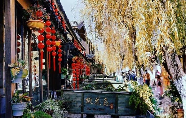 Chắc chắn đến Lệ Giang thì phải đi ngắm thành cổ rồi. Lệ Giang – Đại Nghiên Cổ Trấn, cố đô của vương quốc Naxi, nơi cảnh đẹp nên thơ cổ kính và lâu đời bậc nhất Trung Quốc, trước đây là một phần của Con đường Tơ lụa từ Vân Nam qua Tây Tạng. Giống như một Hội An phóng to vậy, đi qua từng con hẻm, từng góc phố, ngắm nhìn từng ngồi nhà với kiến trúc cổ xưa xen lẫn những con kênh nhỏ, từng hàng cây hoa lá khoe sắc trong ánh nắng, bạn sẽ quên đi những hối hả, xô bồ của cuộc sống nơi đô thị. Hàng quán từ đồ lưu niệm hay đồ ăn vặt, hoa quả, bánh, cả trà sữa cũng có luôn. Tha hồ vừa ăn vừa đi thăm thú.