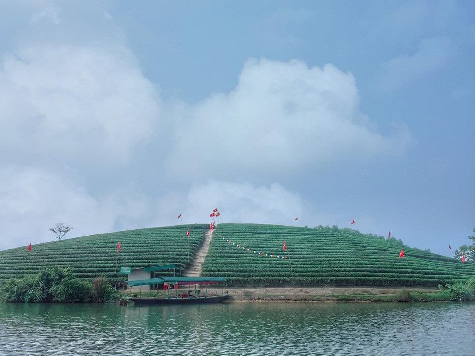 Quanh đồi chè có những đập nước Cầu Cau rất rộng lớn, nằm giữa đập chính là những quả đồi thoai thoải được người dân trồng chè tạo nên hình thù những con ốc đang khoe sắc trên mặt nước. Cảnh tượng yên bình và thơ mộng khiến cho tâm hồn người ta thư thái đến lạ.