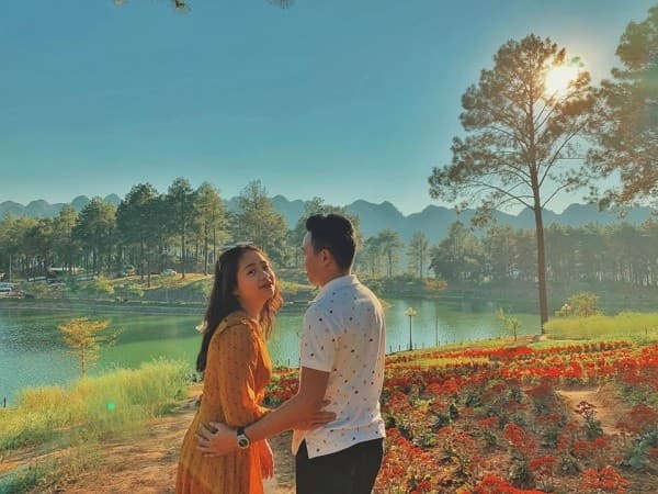 Đi cùng mẹ thì không thể bỏ qua điểm này vì các mẹ rất thích hoa, tha hồ chụp ảnh. Nhìn xa xa thấy thung lũng nhỏ nhỏ, khi đến gần mà bị choáng ngợp bởi những thảm hoa và hoa hình trái tim được trồng từ nhiều loại hoa đẹp rực rỡ, trong đó có nhiều loại hoa đặc trưng của Tây Bắc.