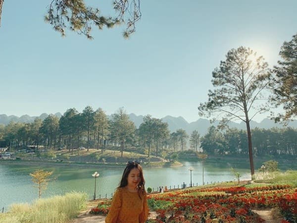 Bên cạnh hồ nước là bạt ngàn cây thông. Không chỉ có khí hậu trong lành, mát mẻ, khung cảnh thiên nhiên thơ mộng, hữu tình mà còn được xem là nơi lưu giữ kho tàng văn hóa của dân tộc Thái ở Sơn La.