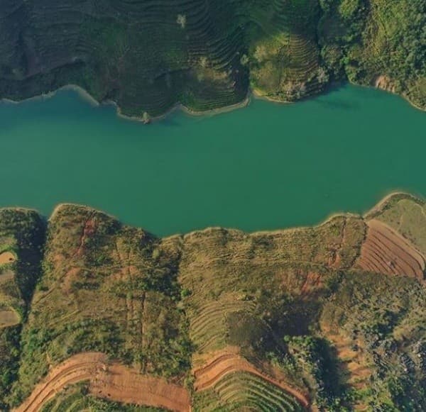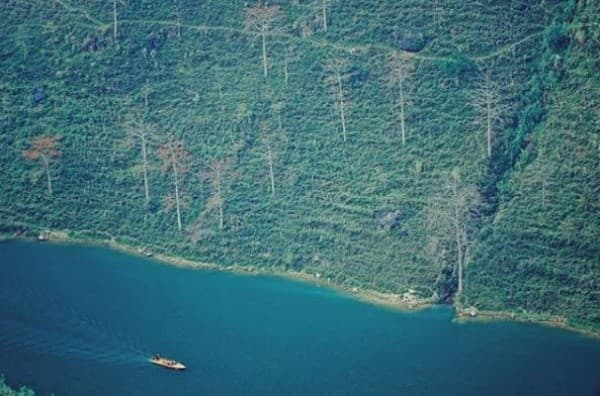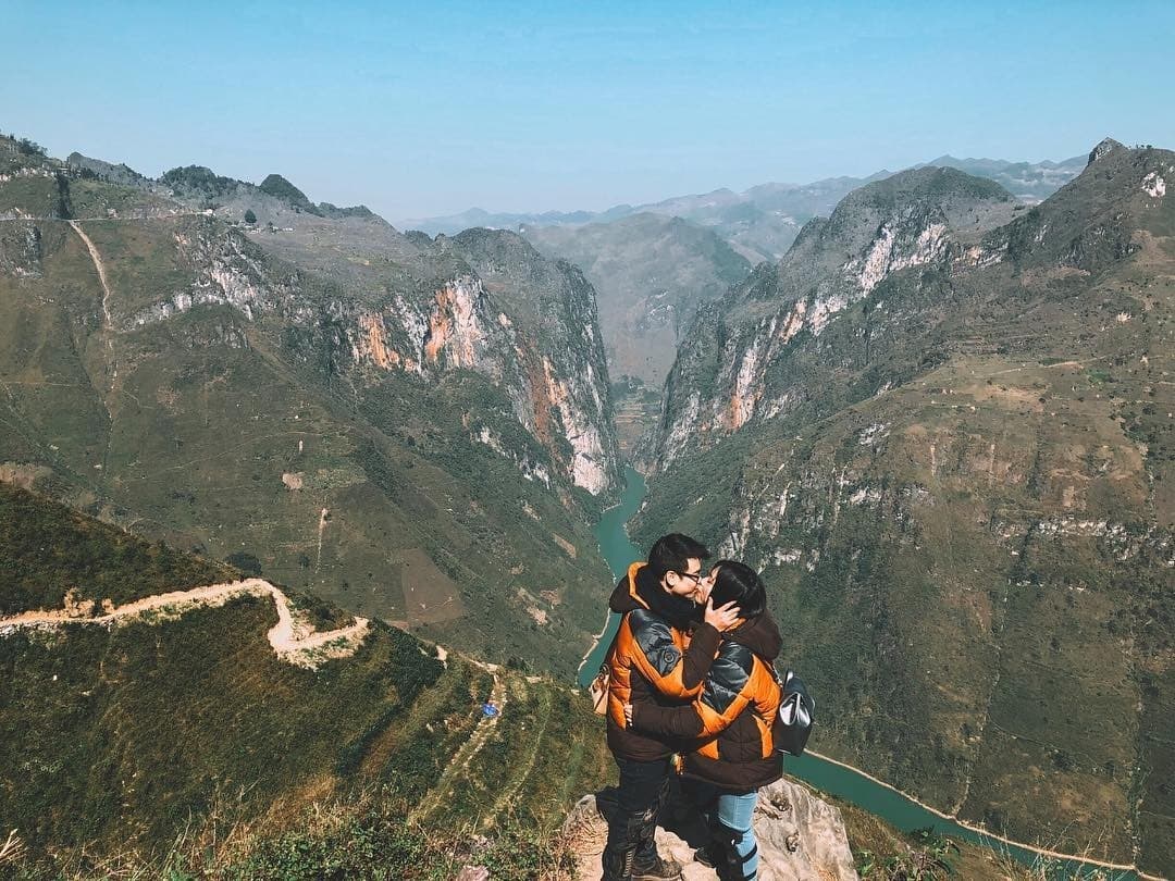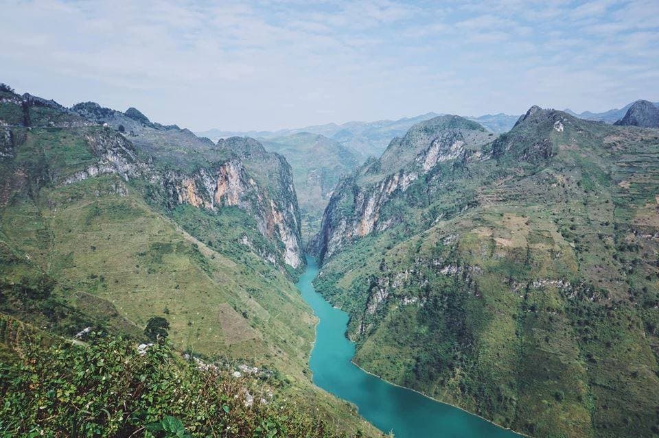 Từ những mỏm đá cao, bạn có thể phóng tầm mắt xuống ngắm trọn bức tranh dòng sông Nho Quế và hẻm vực Tu Sản với những gam màu, đường nét tài tình. Nước sông khúc chảy xiết trắng xóa, khúc lại hiền hòa, lững lờ trôi. ( Ảnh: Sưu tầm )
