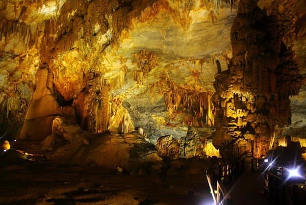 Với chiều dài khoảng 10km, hang Khuôn Bồng mang đến cho du khách trải nghiệm phiêu lưu vô cùng kỳ thú. Tại đây, bạn sẽ được khám phá quá trình hình thành thạch nhũ rất thú vị. Đặc biệt, nơi đây là điểm tham quan ít người biết nên không gian rất vắng vẻ, bạn và gia đình sẽ có những phút giây yên bình bên nhau.