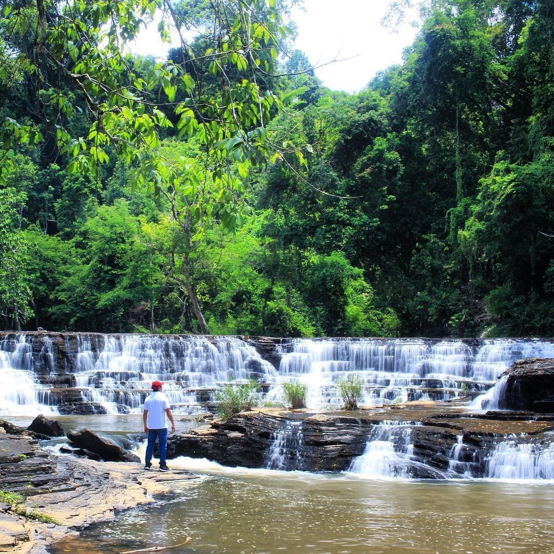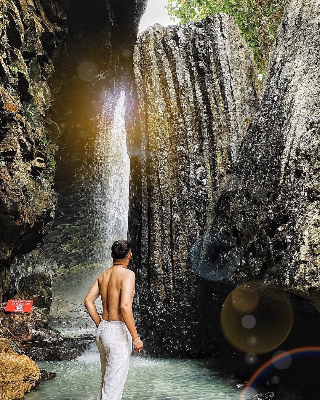 Đây được gọi là thác Ba Tầng bởi dòng chảy từ thác được chia làm 3 tầng rõ rệt, rất đẹp. Tầng thứ nhất tương đối hẹp với độ dốc nhỏ. Tầng thứ hai trải rộng cùng nhiều bậc đá. Tầng thứ 3, nước đổ thẳng xuống mặt hồ, tung bọt trắng xóa khắp không gian.