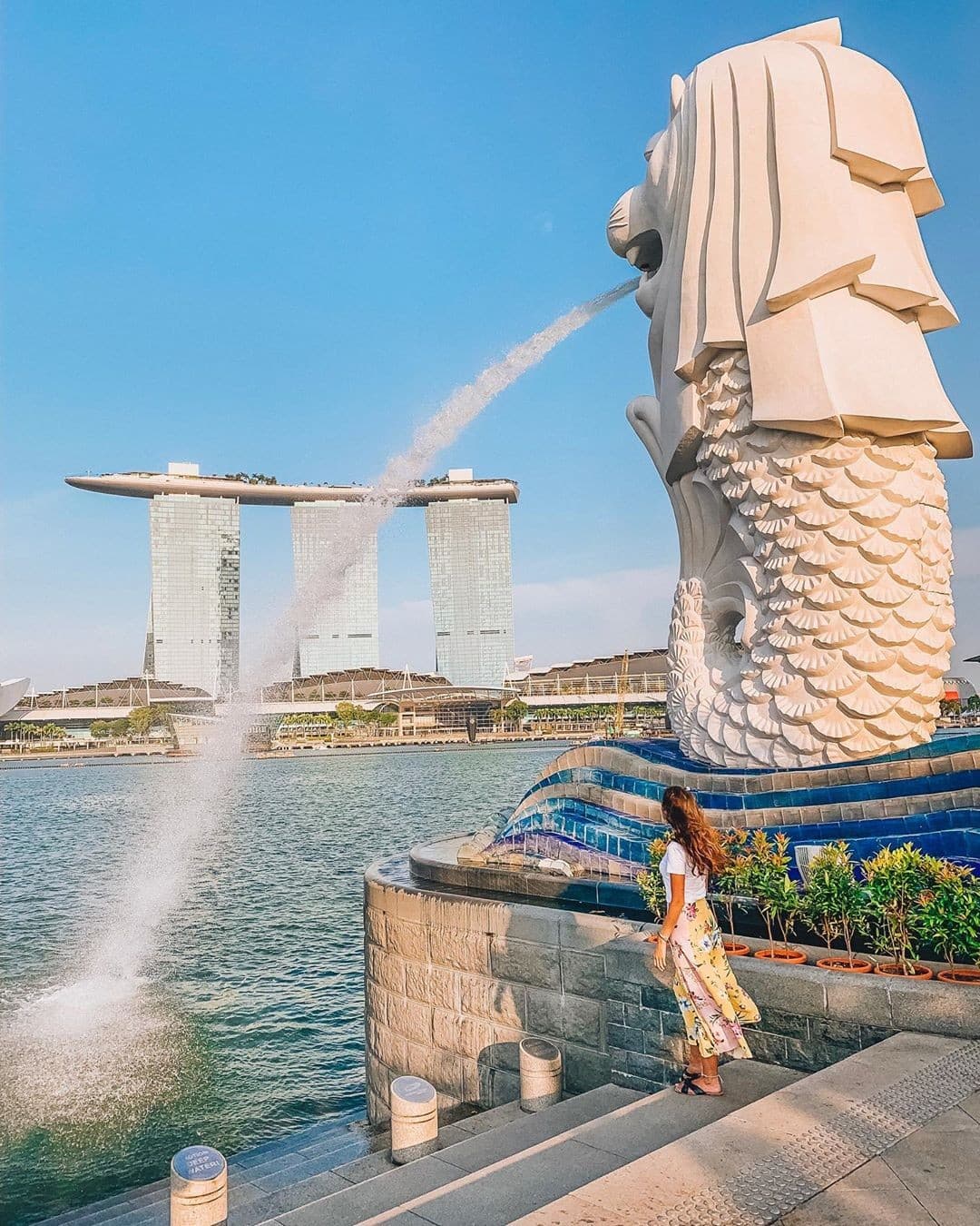 Đến với Quốc đảo sư tử mà bỏ qua check in bên cạnh biểu tượng sư tử biển Singapore thì sẽ là một thiếu sót lớn cho bất cứ ai. Bật mí là dù ban ngày hay buổi tối thì Merlion Park vẫn đẹp tuyệt vời và để lại những bức ảnh để đời đó nhé.