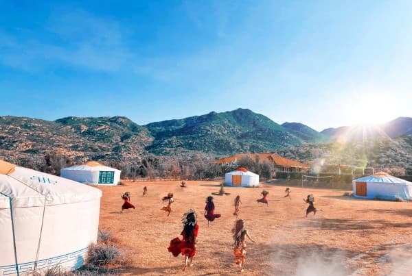 Nơi đây có những trò chơi hơi mạo hiểm như lái xe địa hình giữa cái nóng oi bức của sa mạc, hay như du lịch trải nghiệm tận hưởng khám phá làng Mông Cổ với những túp lều nhỏ xinh được dựng lên giữa thảo nguyên xanh mát. (Ảnh Hứa Quốc Anh)
