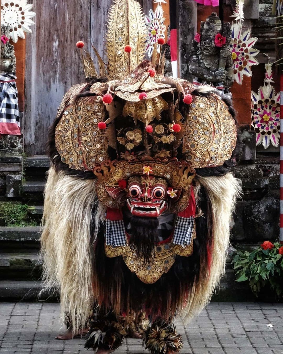 Trước đền Pura Puseh, giữa đám đông chung duyên kỳ ngộ, tôi lắng nghe giai điệu bi tráng của tổ hợp 10 nhạc cụ truyền thống Bali, và say mê thưởng thức sự xuất hiện mạnh mẽ của Barong, với mặt nạ sư tử và hình hài đôi ba phần tương tự hỏa lân. Khoảng 30’ trôi qua, lừ lừ từ phía sau ngôi đền, Rangda gia nhập vũ điệu như một nỗi kinh hoàng của bóng đêm: “Vuốt dài 10 ngón, lưỡi đỏ lửa và cổ đeo vòng ruột người”. Khi tranh đấu của Barong và Rangda đi đến hồi kết thúc, hơi thở của hàng trăm lữ khách nén chặt trong lồng ngực từ 5’ trước bất ngờ phá tung lồng ngực, hiện hữu thành âm thanh của một rừng hoan hô không ngớt.