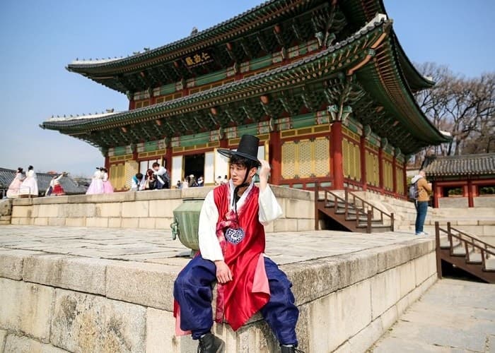 Đến đây bạn nên thuê đồ truyền thống hanbok ở làng Bukchon Hanok để có những tấm hình đẹp nhất với cung điện Gyeongbokgung.