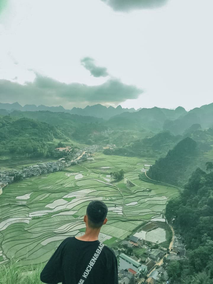 Từ Đồn Cao có thể ngắm được toàn cảnh cánh đồng Làng Nghiến tuyệt đẹp như bức tranh và núi Tù Sán hùng vĩ - Ảnh: Đạt